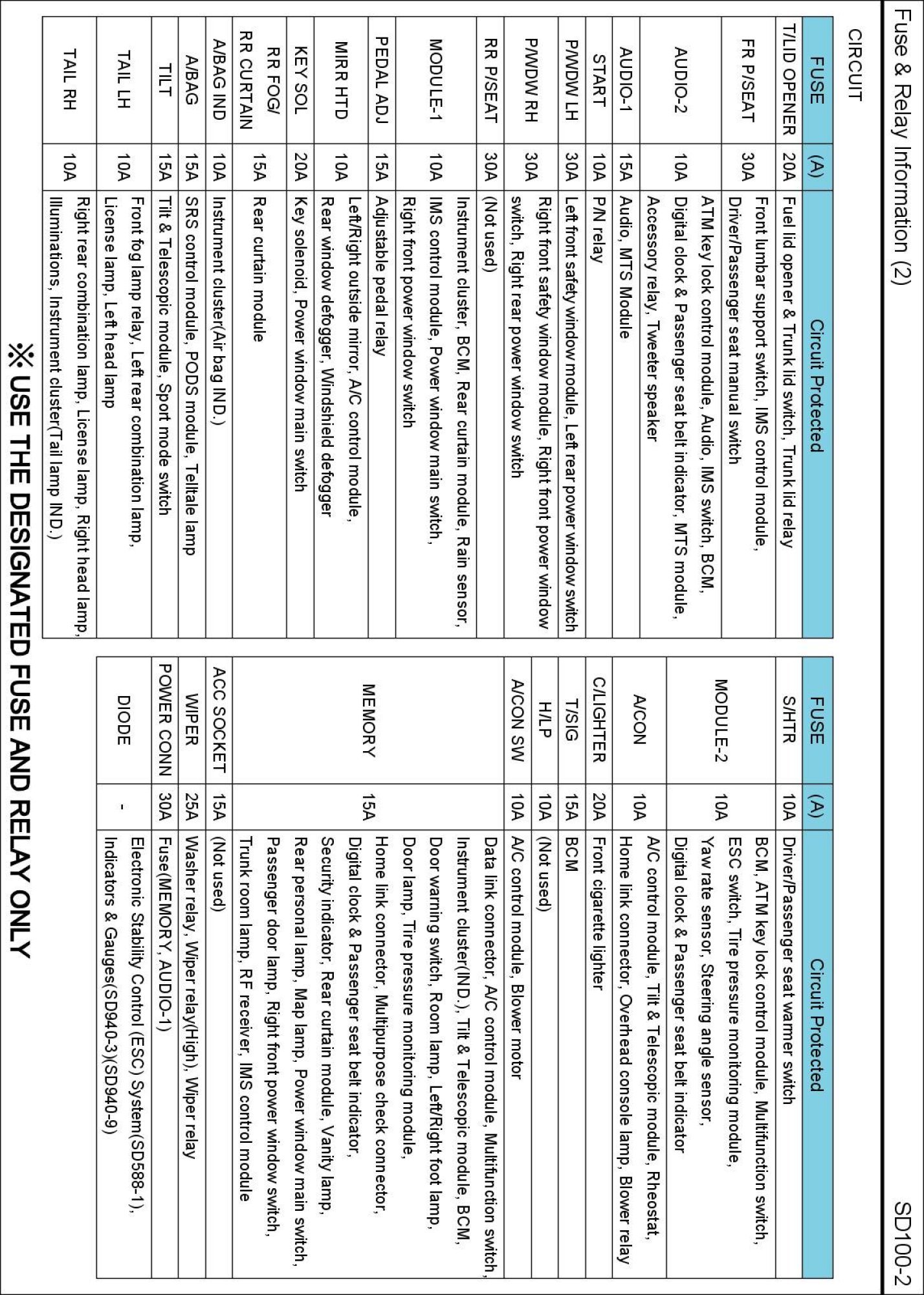 Fuse & Relay Information