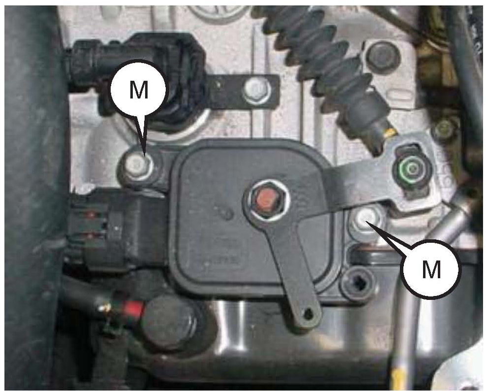 11. Remove 2 mounting bolts (M) and remove the