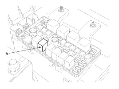 To prevent fuel being injected from injectors while the engine is being cranked, remove the fuel pump relay(A) from the fuse box.