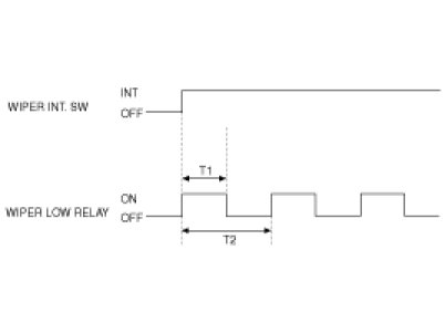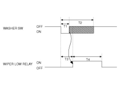 (1) If the duration of washer switch input is measured from 0.2 sec to 0.6 sec, after T3, the wiper low relay output is ON for 0.7 sec. (For 1 Time wiping)