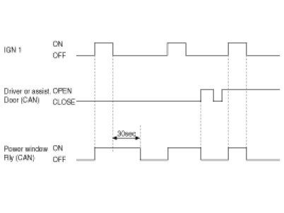 (3) During the operation 2), if driver or assistant side door is opened, the power window relay CAN signal is turned OFF immediately.