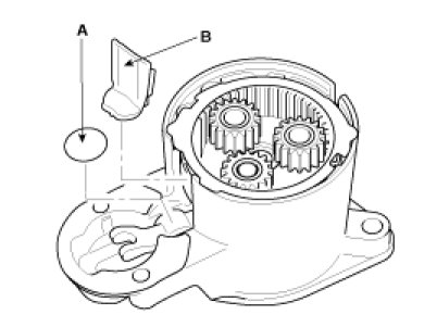 8. Disconnect the planet shaft assembly (A) and lever (B).