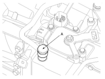 6. Lift the vehicle, then remove the oil level plug (A) from the valve body cover.