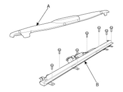 4. Remove the rear curtain (B) from the rear package trim (A).