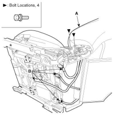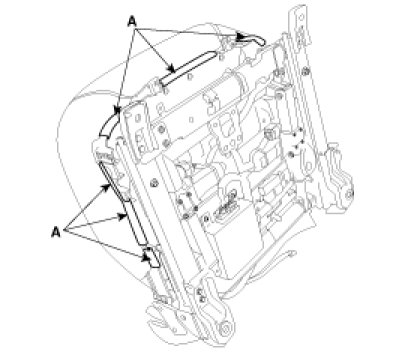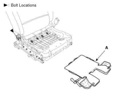 6. Loosen the mounting bolts, then remove the seat back assembly (A).
