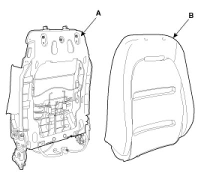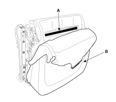 3. After disconnecting the scuff band (A), remove the seat back panel (B).