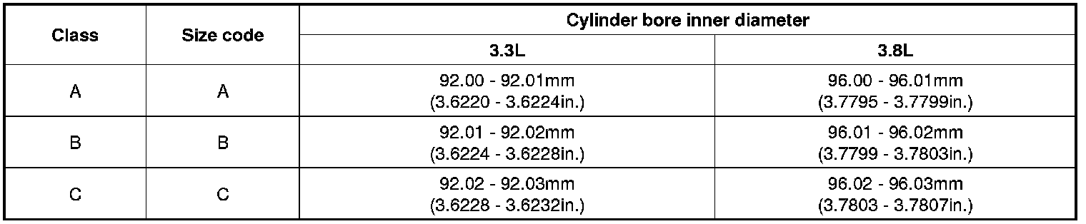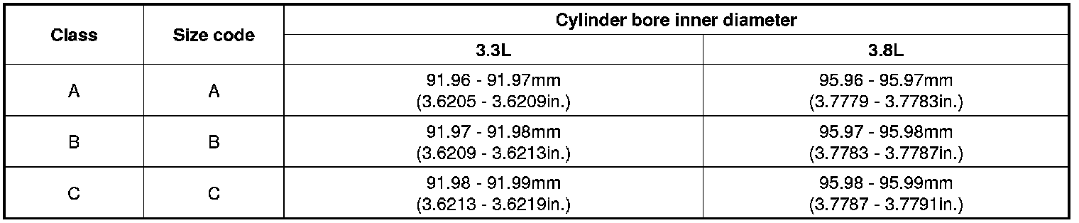 New bore size = piston O.D + 0.03 to 0.05mm (0.0012 to 0.0020in) (clearance between piston and cylinder) - 0.01mm (0.0004in) (honing margin.)