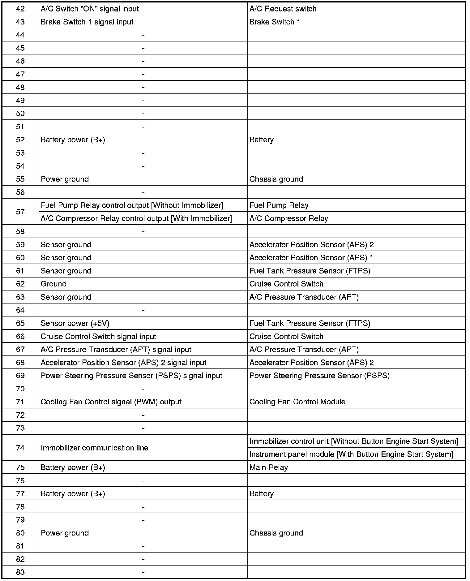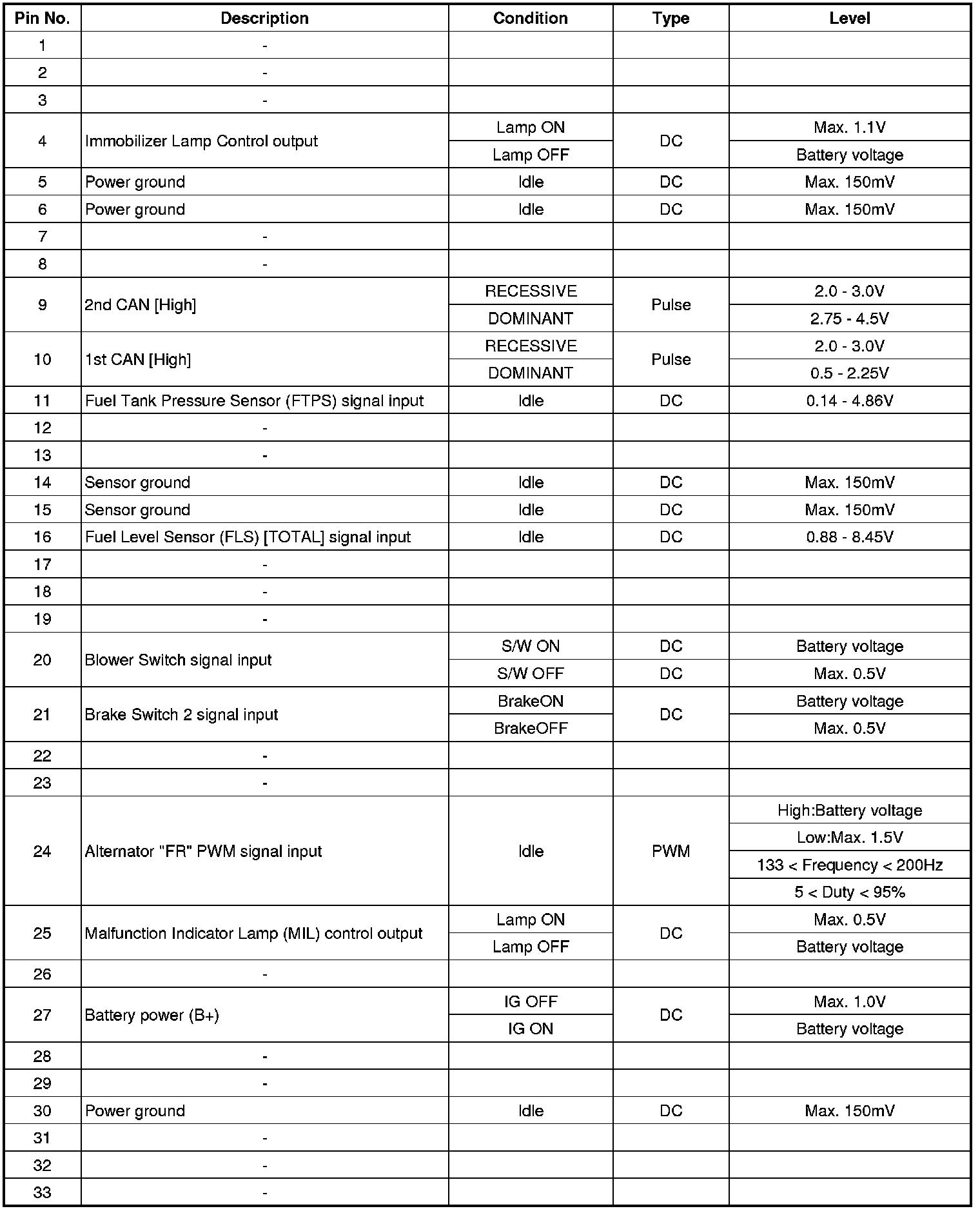 ECM Terminal Input/Output Signal