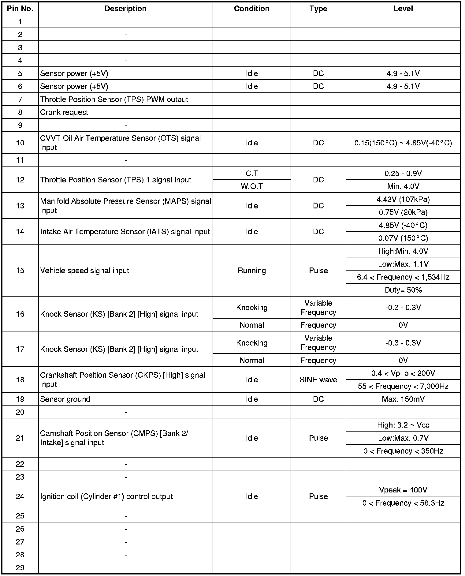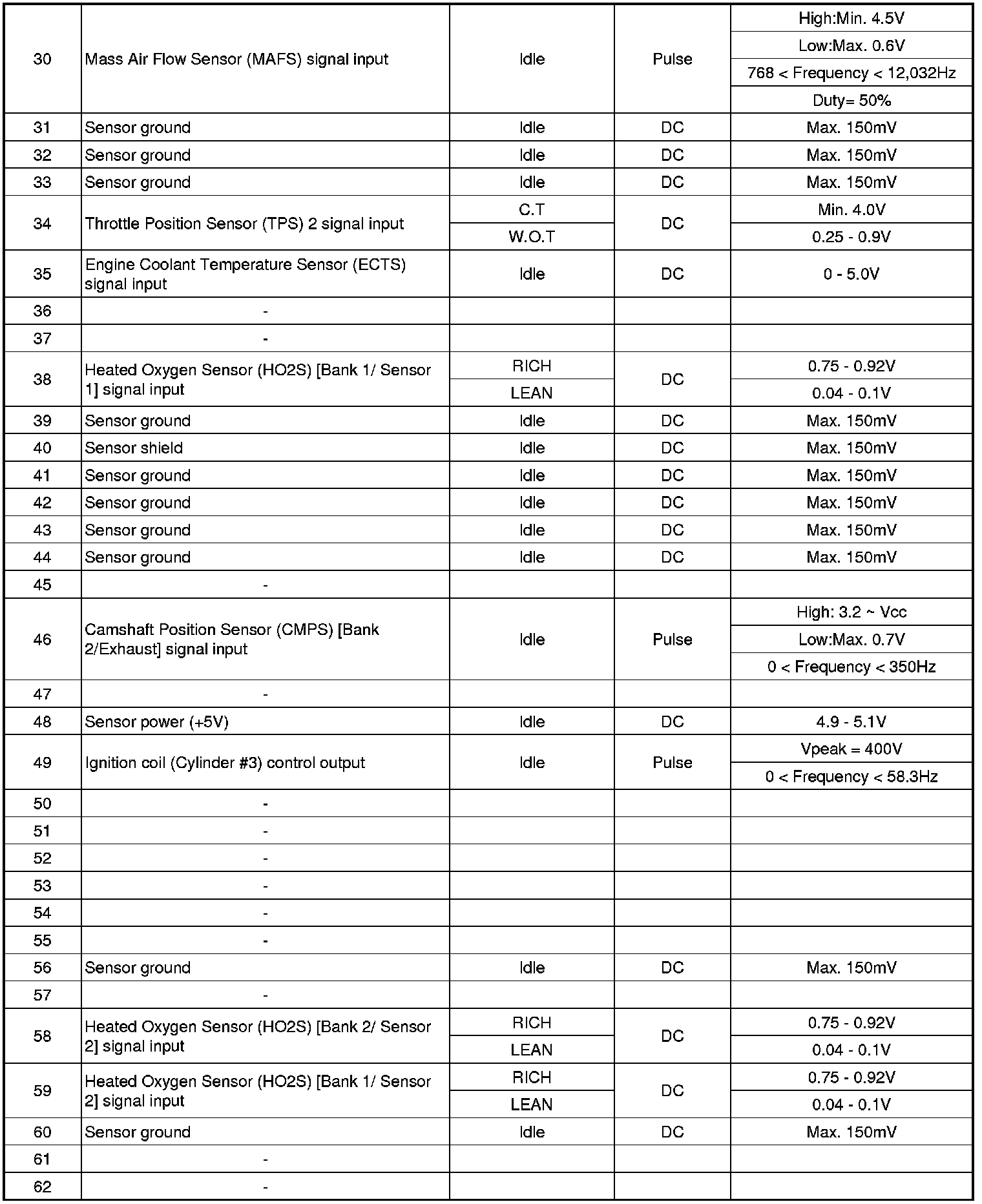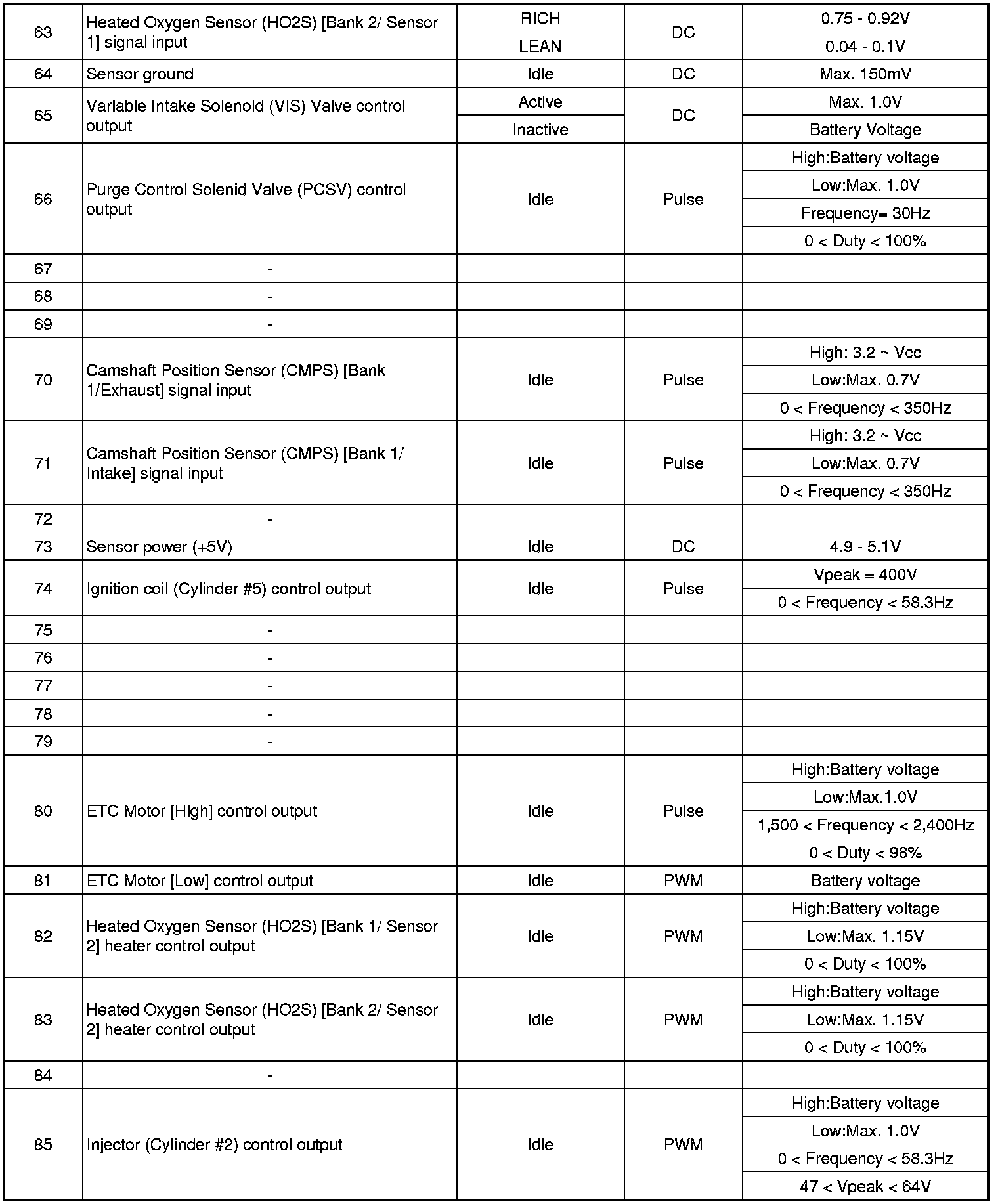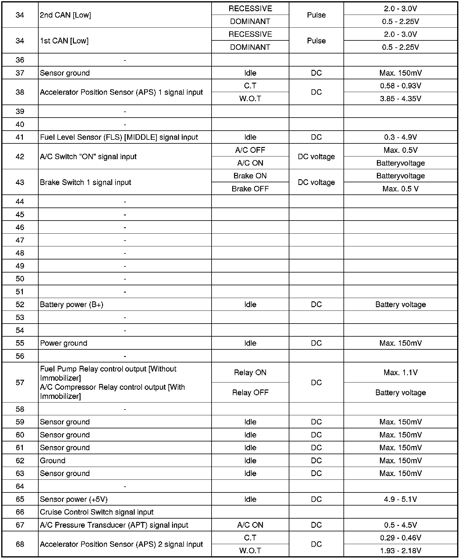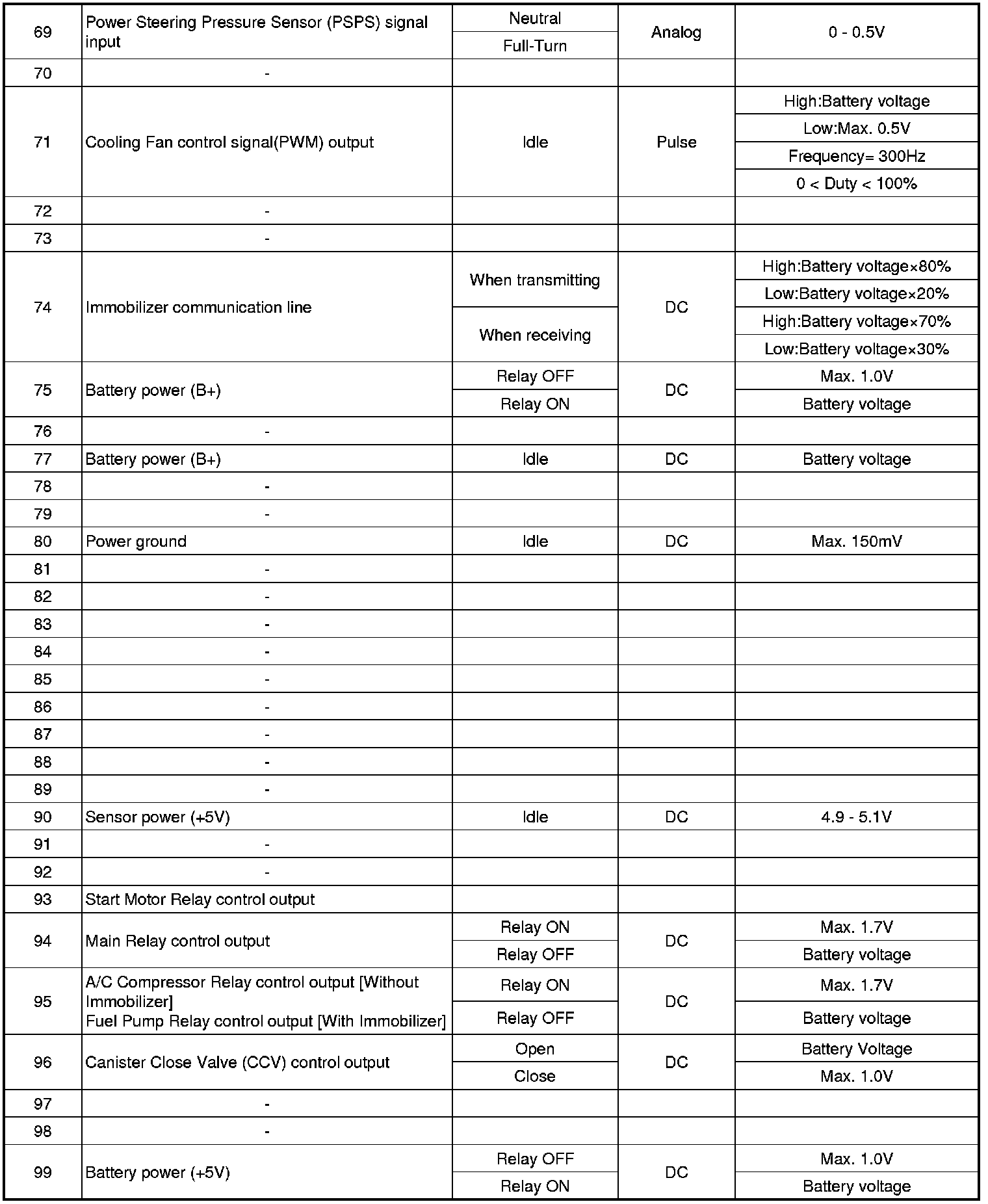 ECM Terminal And Input/Output signal