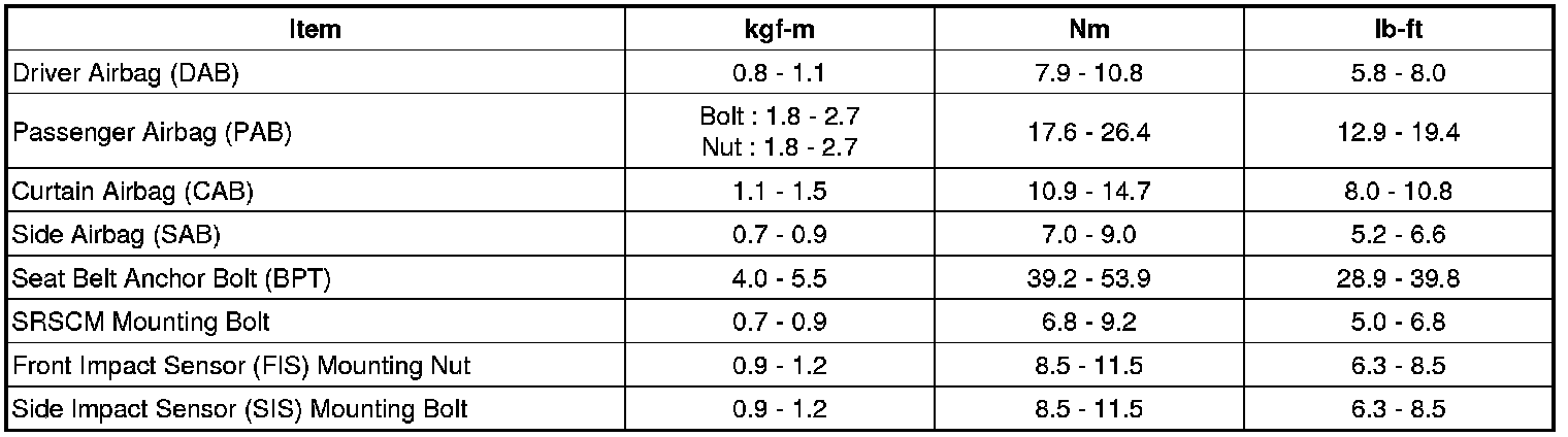 Tightening Torques