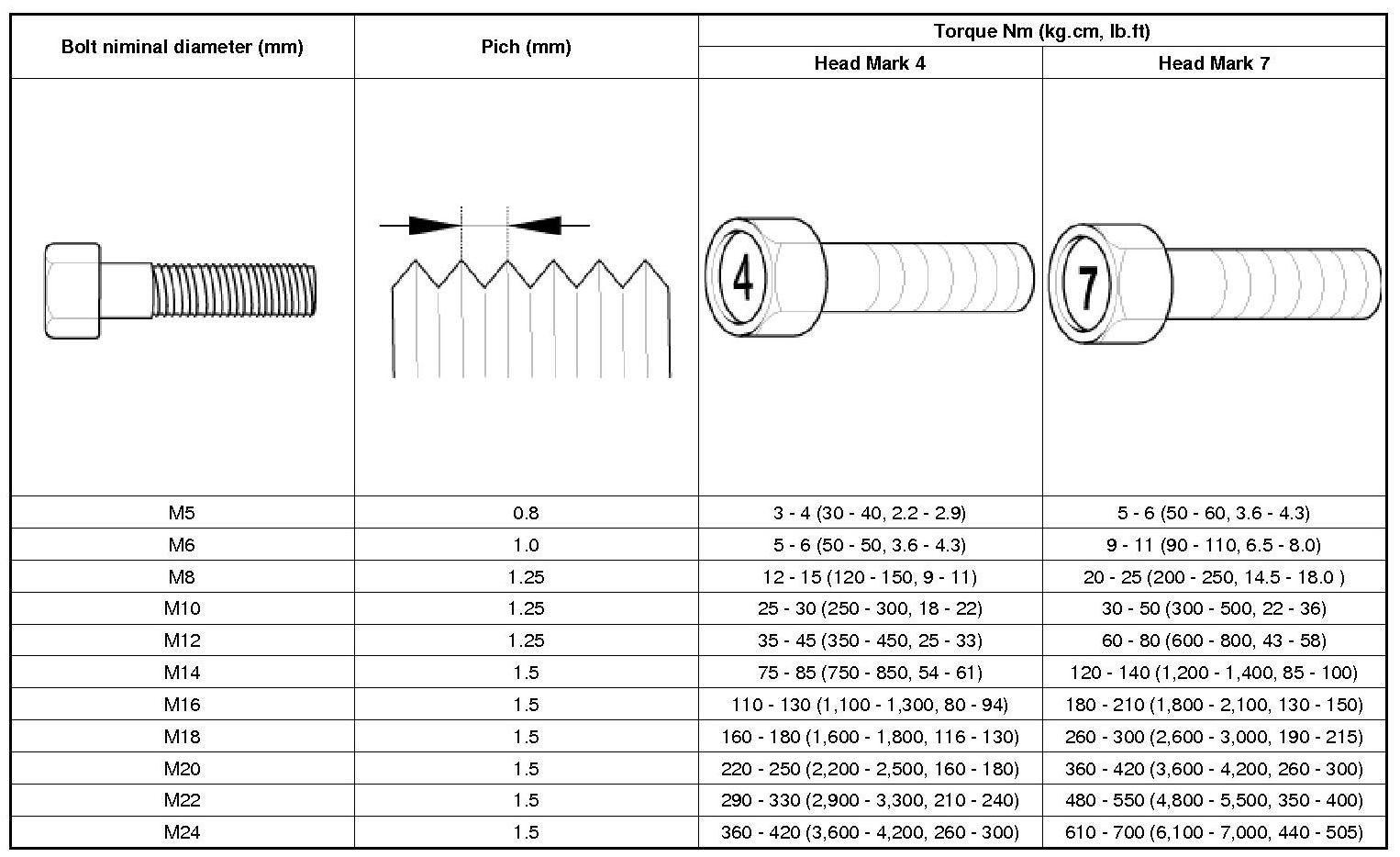 3. If you reduce the torques in the table to the percentage indicated below, under the following conditions, if will be the standard value.