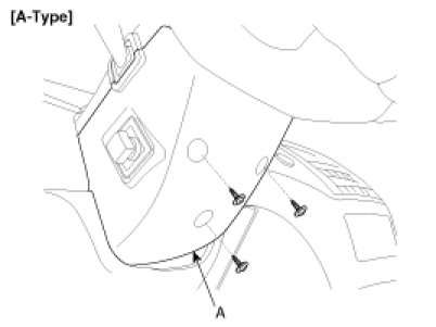 2. Remove the steering column upper and lower shrouds (A) after removing 3 screws.