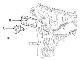 4. Disconnect the immobilizer unit connector and then remove the immobilizer unit(A) and bracket. Remove the immobilizer unit from the bracket(B).