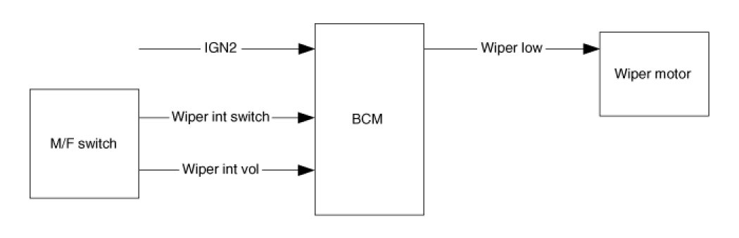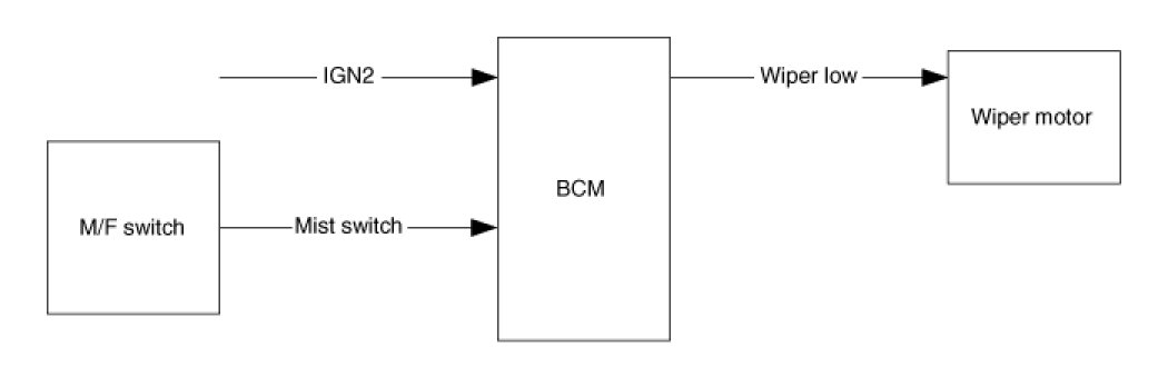 In case of IGN2 On (IGN2 ON), if turning on the Wiper Mist switch(Wiper Mist switch On), then Wiper is controlled, by switch on time. Mist operation does not work at Wiper Washer.