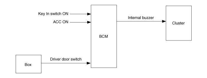 1. Internal buzzer on every 1sec when driver door switch is on and key ign on.