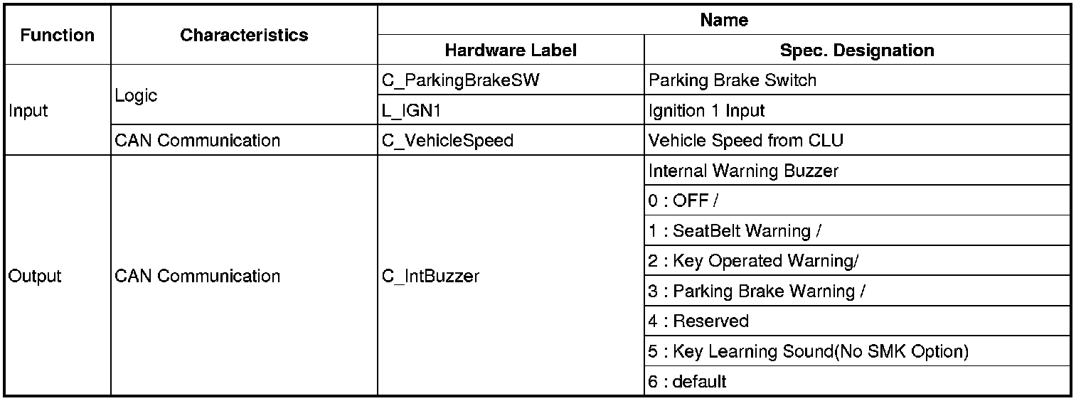 2. Output is off if key ign is in off and driver door switch closed are met during Internal buzzer output.