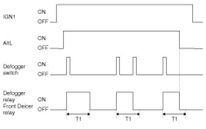 3. Defogger relay & Front deicer relay is turned OFF if AltL OFF or IGN1 OFF during defogger relay ON.
