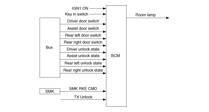BCM, SJB(Smart Junction Box) and CLU(Instrument Cluster) are connected by CAN line.