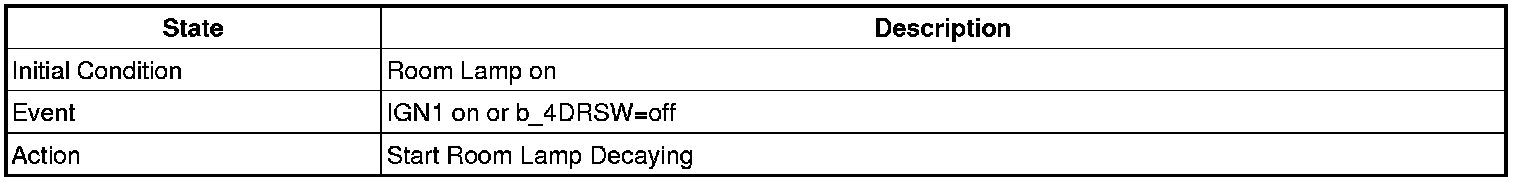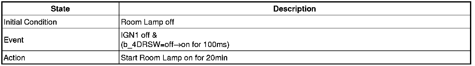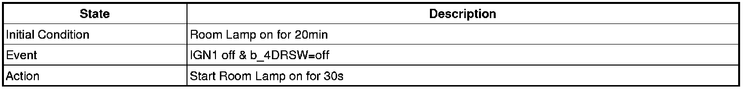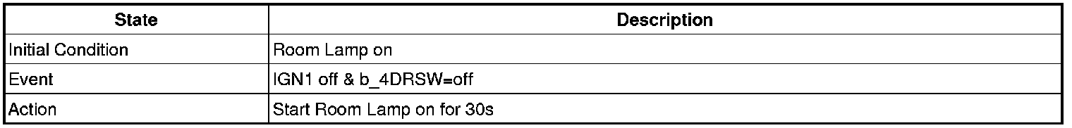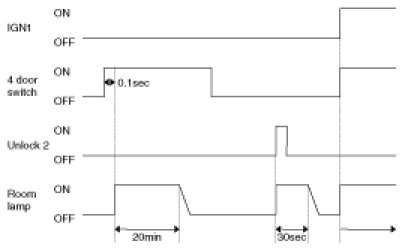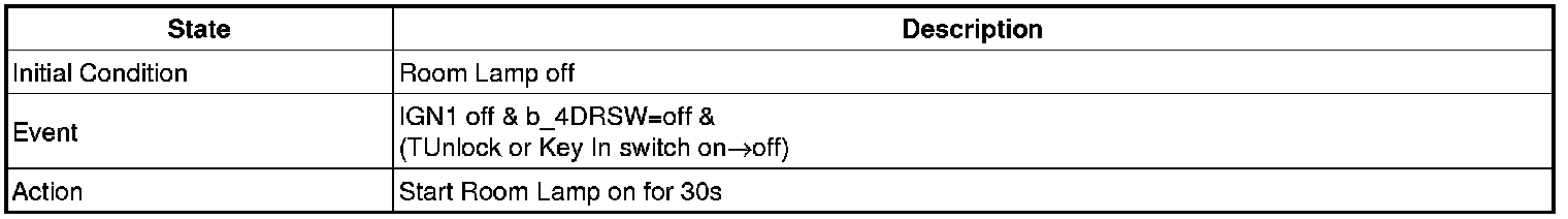 - 4 Door in closed IGN1 off & (Key in -> Key out): 30-second delay will be lights out.