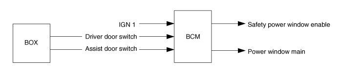 4. IGN1 OFF when the Safety Power window Enable and power window main output is OFF at driver door switch or Assist door switch OPEN.