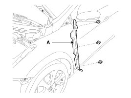 7. After loosening the fender mounting bolts and nut, then remove the fender (A).