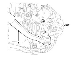 3. Loosen the nut and then remove the tie-rod end (A) with the front axle.