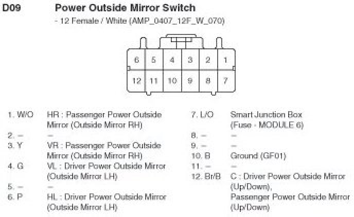 D09 Power Outside Mirror Switch: