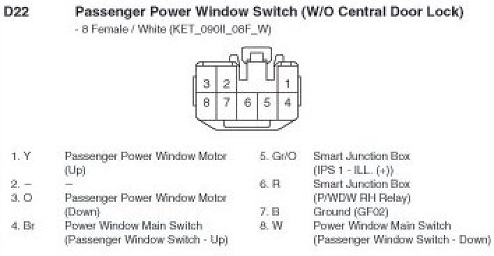 D22 Passenger Power Window Switch (W/O Central Door Lock):