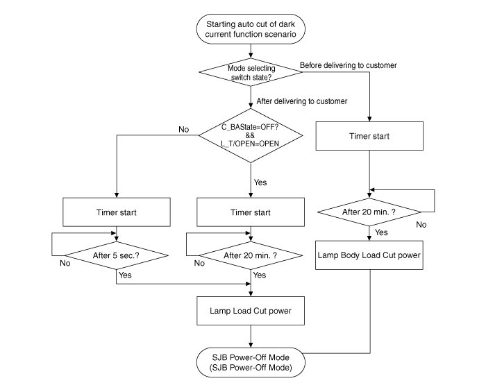 *If mode switch OFF(before delivering to customer) is set, power of BCM, Digital clock and audio is shut off.