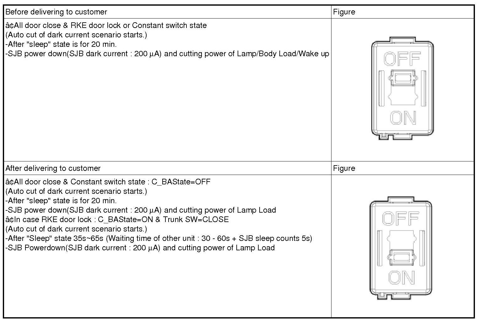 A. "Sleep" condition : IG OFF, constant input switch, CAN network doesn't activate.