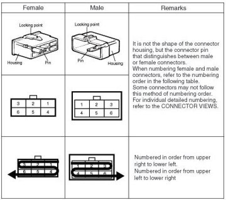 NOTE: UNLESS OTHERWISE STATED, ALL CONNECTOR VIEWS ARE FROM THE TERMINAL SIDE OF THE CONNECTOR.