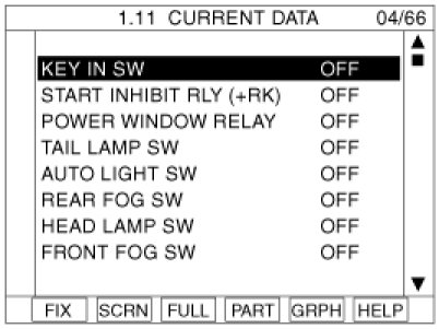 3. Select "Current data", if you will check current data of BCM. It provides power supply status, multi function status, lamp status, door status, lock system status, wiper, auto light status and so on.