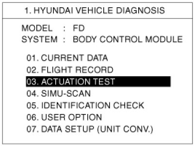 4. If you will check BCM data operation forcefully, select "Actuation test".