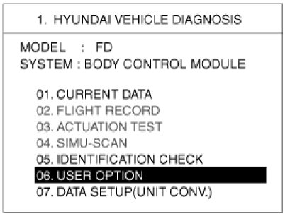The BCM offers 3 items user option mode for a user convenience (AUTO Door Lock/Unlock, Door KEY ARM/Disarm