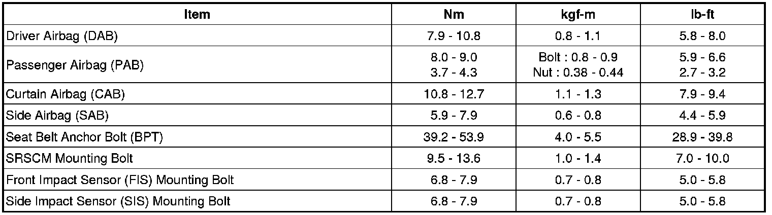 Tightening Torques