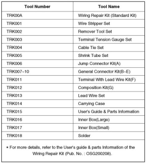 WIRING REPAIRREFERENCE SERVICE TOOLS