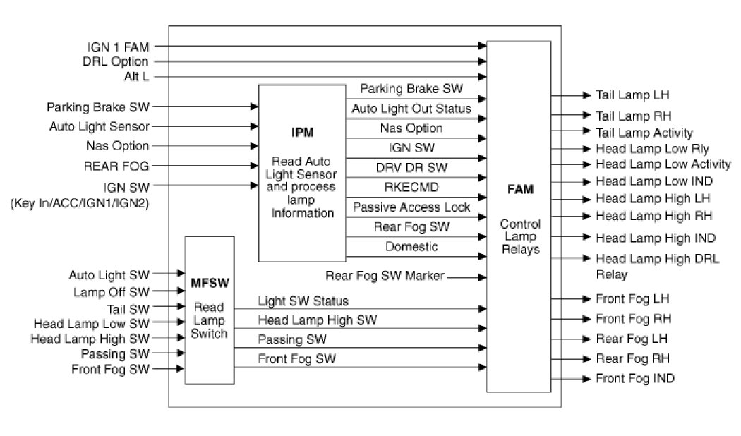 Tail / Head Lamp sub functions are controlled by MFSW, IPM and FAM.