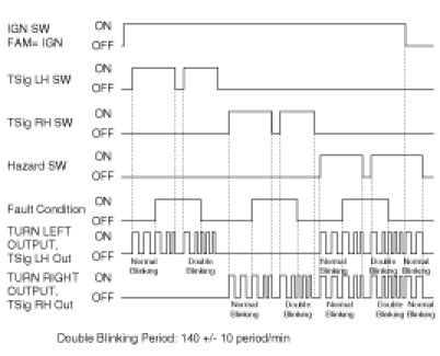 - Normal or Double blinking by Hazard Switch or Turn signal Switches with ignition on condition