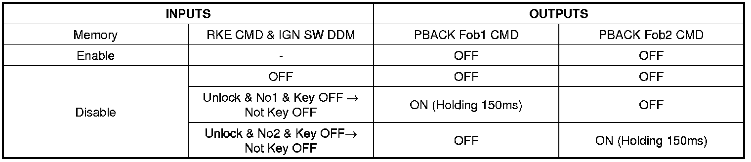 DDM transmits one of Fob1, and Fob2 Playback Start command to ADM via can communication when As for DDM, it starts Playback with last received the fob command when becoming IGN SW DDM = Key Off -> Not Key Off in the condition which is necessary for Fob Playback Enable Mode after sending a corresponding Playback command (after ADM receives Playback command from DDM ).