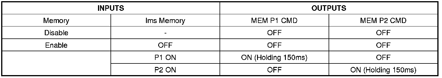 B. After memorized, DDM not memorizes position even if P1 or P2 or Fob1 or Fob2 Input is executed again. In order to memory position again, memory mode should be ENABLED again.