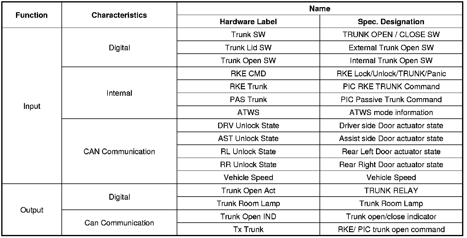 - Generate Trunk open command signal issued by Trunk Lid switch for PTL via CAN