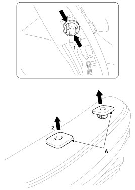 7. Pull out the headrest guides (A), while pinching the end of the guides, and remove them.