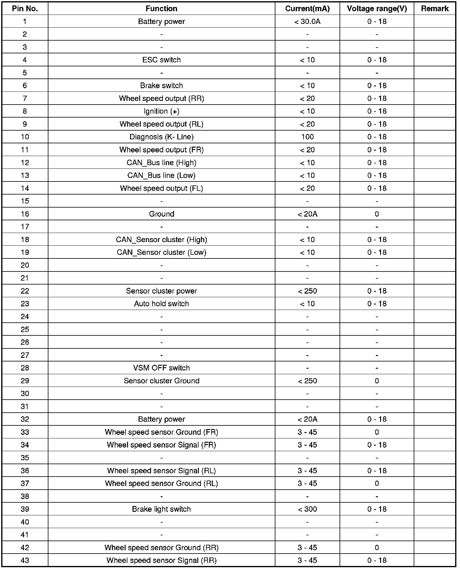 ESC Connector Input/Output