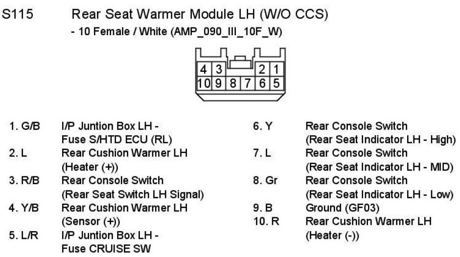 S115 Rear Seat Warmer Module LH (W/O CCS):