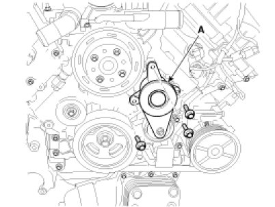 7. Remove the drive belt tensioner (A).