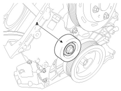 22. Install the drive belt idler (A).
