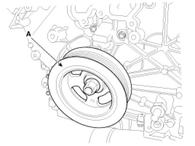 12. Remove the crankshaft pulley (A).