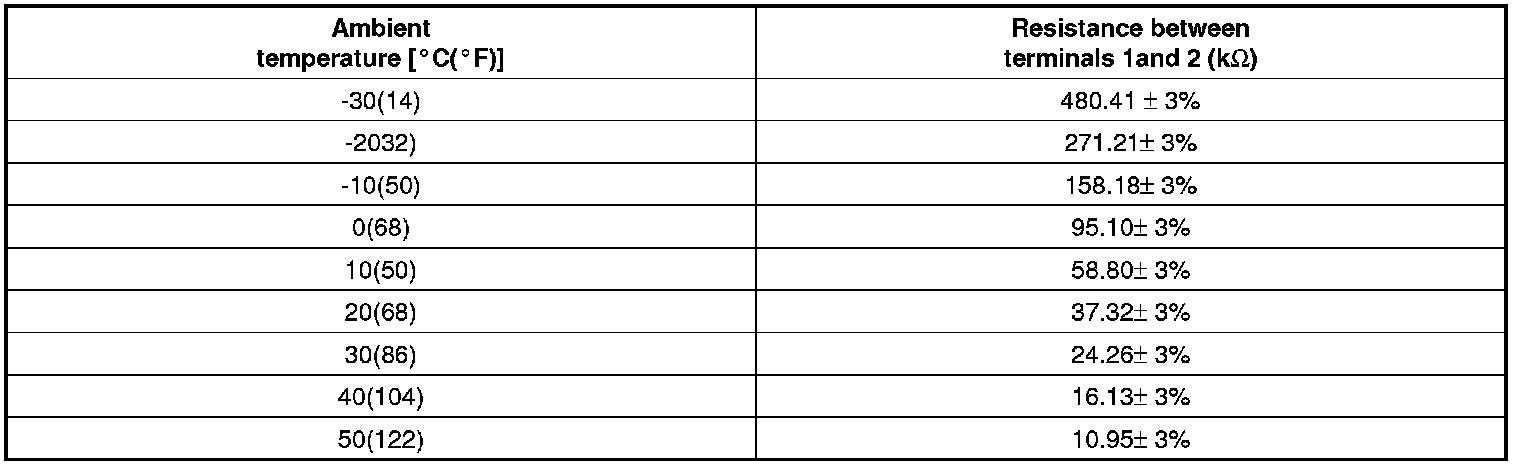 3. Check the resistance of ambient temperature sensor between terminals 1 and 2 whether it is changed by changing of the ambient temperature.