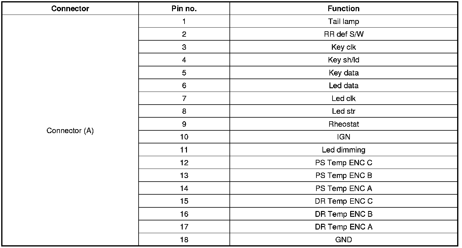 Connector Pin Function