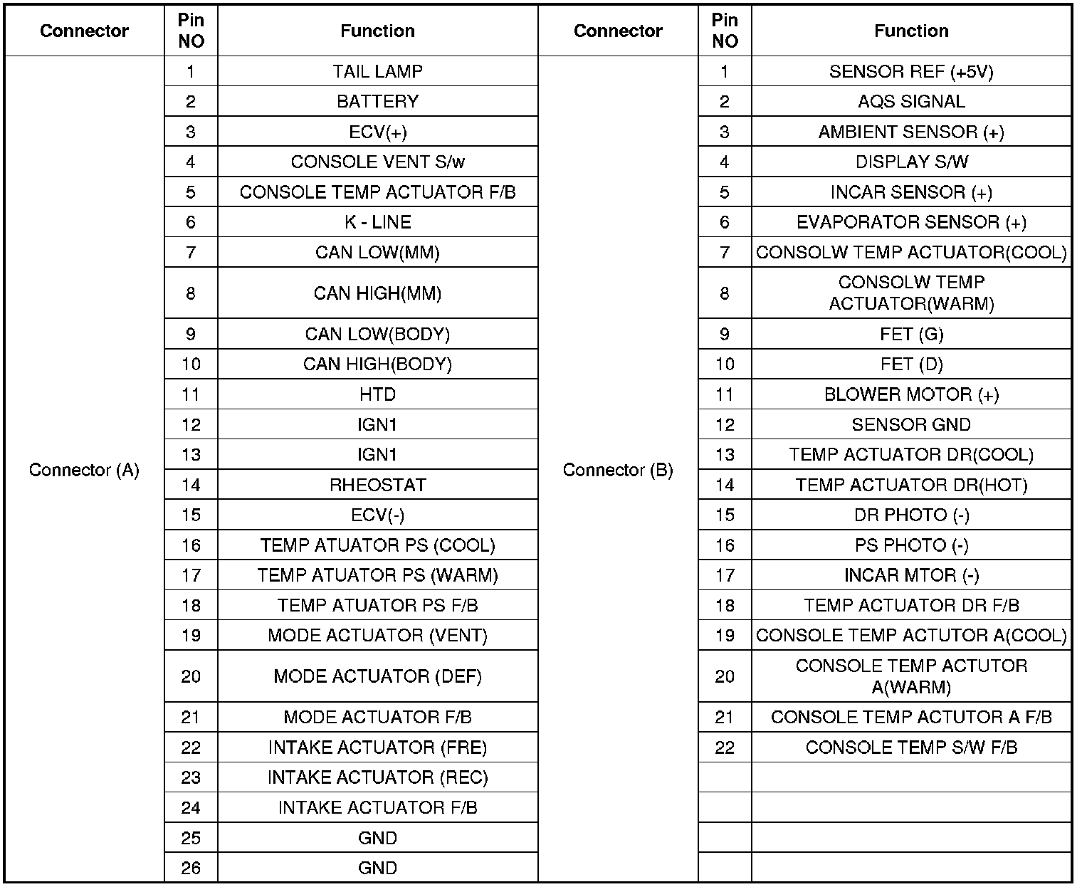 Connector Pin Function